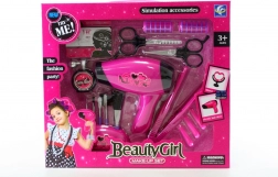 Forkæl små stylister med dette komplette skønhedssæt. Indeholder en funktionsdygtig legetøjsføntørrer på batterier, glattejern, saks, hårruller, børster og flere tilbehør til kreativ leg. Ideelt til børn fra 3 år, udvikler fantasi og finmotorik. Sikker legetøj, rigt tilbehør og nem betjening vil glæde enhver lille stylist.