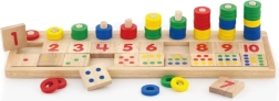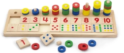 Dette trælegetøj er ikke kun en fornøjelse, men også et fremragende uddannelsesværktøj. Børn kan lege med nummererede fliser og farverige ringe, som fremmer visuelle og taktile læringsfærdigheder.