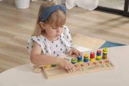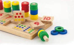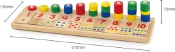 Legetøjet er lavet af miljøvenligt træ, hvilket sikrer sikkerhed og en behagelig følelse ved berøring. Med let aftagelige fliser med tal kan børn også lære simple matematiske opgaver som addition og subtraktion.