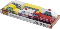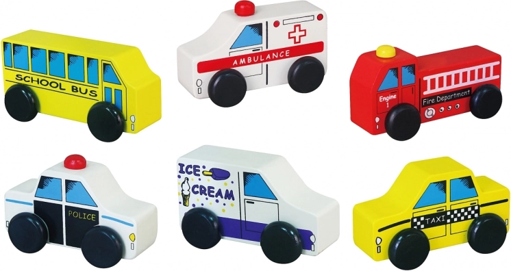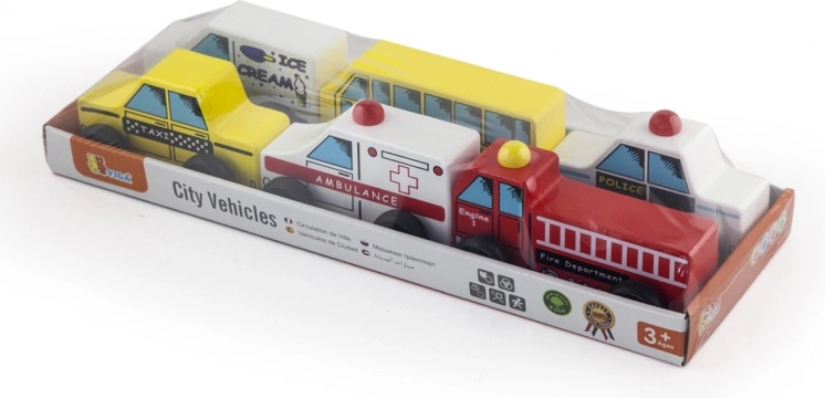 Sættet med træbiler er et ideelt tilbehør til børneværelset. Det indeholder en skolebus, en politibil, en isbil, en taxa, en brandbil og en ambulance. Hver bil byder på specifikke elementer, der understøtter læring og udvikling af motoriske færdigheder.