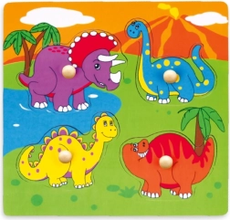 Træpuslespillet Farverige Dinosaurer er det perfekte læringslegetøj for små børn. Dette farverige puslespil giver børn muligheden for at stifte bekendtskab med forhistoriske væsener som Triceratops eller dinosaurer med de længste halse. Bundpladen og rammehåndtagene sikrer stabilitet og lethed ved håndtering, hvilket vækker både sjov og læring hos dine små. Træhåndtagene gør det nemt for børnene at gribe og placere hver dinosaurbrik på det rette sted.