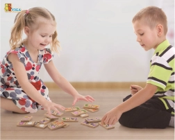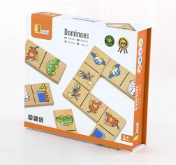 Det charmerende trædomino med motiver af husdyr giver timevis af leg og læring for dit barn. Hver brik har farverige illustrationer, som hjælper med at udvikle mønstergenkendelse og finmotorik. Takket være den praktiske æske er opbevaring og transport af spillet nemt og bekvemt.