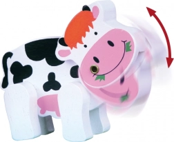 Trælabyrinten med ko fanger børns opmærksomhed med sit farverige design og den søde lille ko.