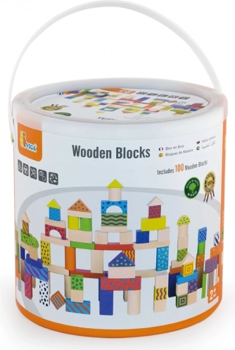 Dette tidløse sæt træklodser giver børn timevis af meningsfuld leg. Med 100 farverige dele i forskellige former kan de bygge tårne, huse og hele små byer, mens de udvikler øje–hånd-koordination, logisk tænkning og tålmodighed.