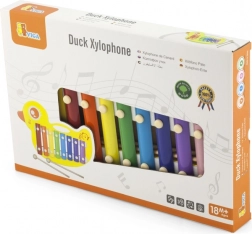 Denne søde børnexylofon i andeform imponerer med livlige farver og et ergonomisk design med håndtag, så den er nem at bære. De farvede metalplader skaber klare toner, der motiverer børn til at udforske rytme og deres første melodier.