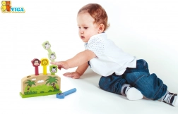 Når børn trykker på pindene, træner de fingre og håndled, lærer præcision og forstår princippet om årsag og virkning, når dyrene springer op.