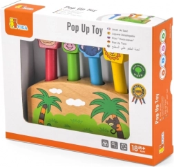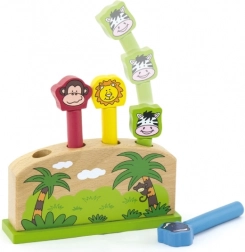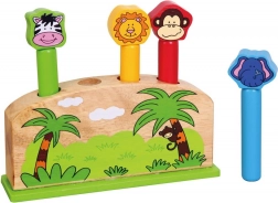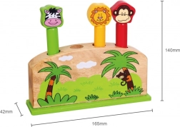Dette træ-pop-up spil med dyr er et ideelt første motoriklegetøj. Børn sætter dyrepindene i hullerne, og når fjederen trykkes ned, springer figurerne sjovt op. Den robuste træbase med jungletema og de venlige dyr indbyder til gentagen leg og udvikler både tålmodighed og koncentration.