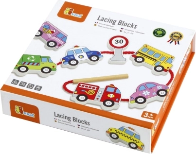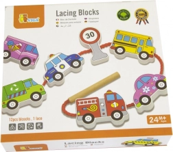 Dette kvalitets snøresæt med køretøjer i træ giver børn glæden ved at lære gennem leg. Sættet indeholder 12 dobbeltsidigt malede brikker med biler, bus, ambulance, brandbil og trafikskilte samt en solid snor med pind for nem gennemføring. Børn kan skabe deres egne historier om bytrafik, rejser og trafiksikkerhed.