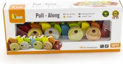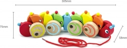 Denne glade træ-caterpillar er det ideelle legetøj til småbørn. De farverige segmenter bevæger sig og roterer under kørsel, hvilket motiverer til gang og aktiv leg. Den robuste konstruktion og de glatte kanter sikrer sikker brug i små børnehænder.