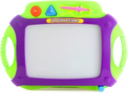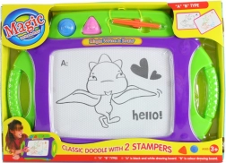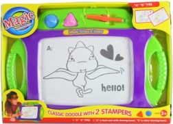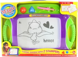 Dette farverige tegnebræt er et fremragende værktøj til at udvikle dine børns kunstneriske færdigheder. Med dimensioner på cirka 44 x 32 cm tilbyder det masser af plads til ubegrænset kreativitet. Brættet er udstyret med en stylus fastgjort på en snor, der sikrer, at pennen aldrig bliver væk. Derudover indeholder det to ekstra magnetiske stempler for at skabe interessante former.