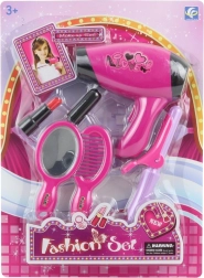 Et stilfuldt skønhedssæt til børn med en fungerende batteridrevet hårtørrer vil glæde små modeelskere fra 3 år. Sættet indeholder hårtørrer, krøllejern, kam og andre tilbehør til kreativ frisørleg. Takket være de lette plastkomponenter og den sikre udformning er det ideelt til rolleleg og udvikling af fantasien.