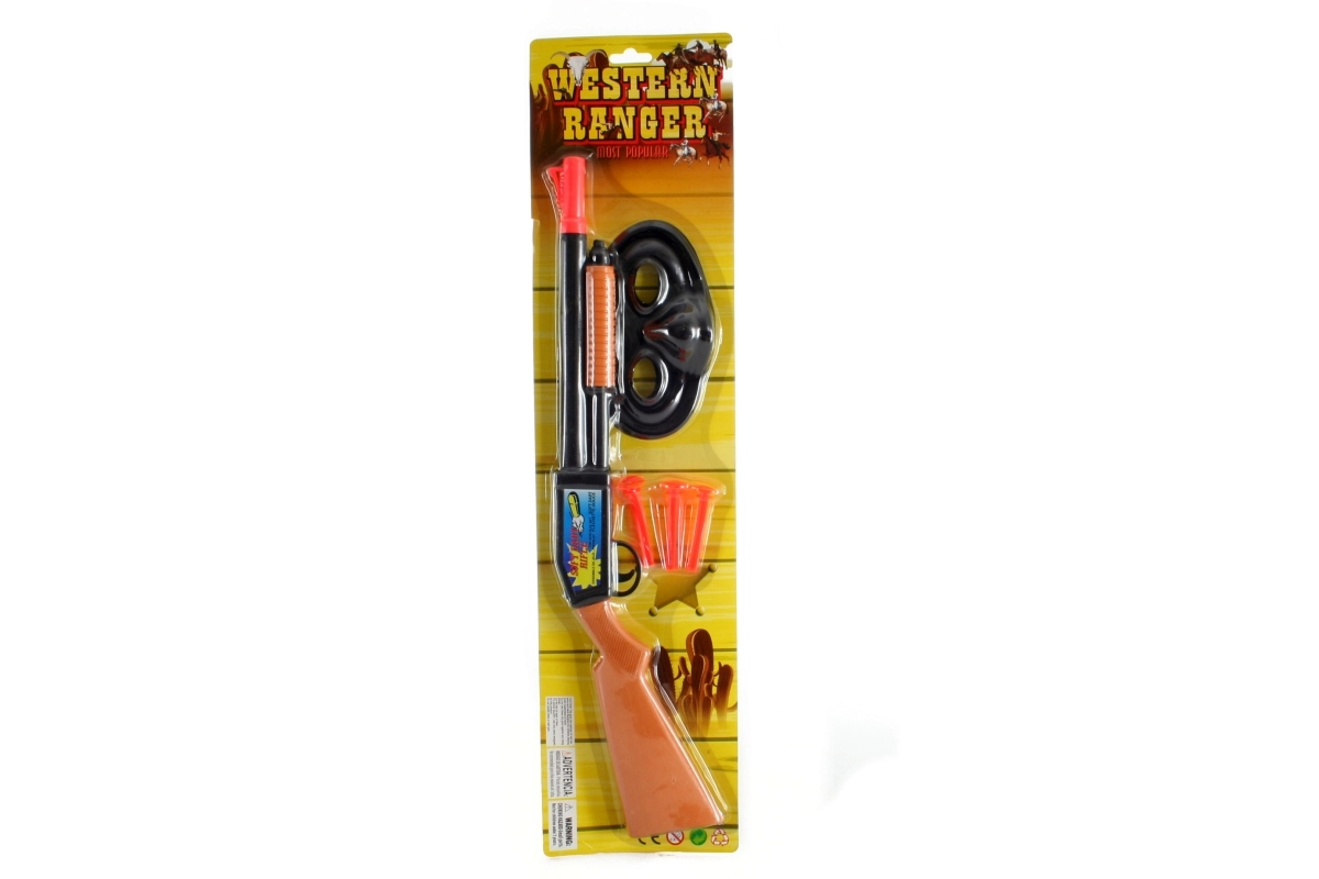 Tag på tur til Det Vilde Vesten med dette sjove western-sæt. Børn får masser af action takket være riffel med sugepileskud, som er sikker til både indendørs og udendørs leg. Der medfølger også en ansigtsmaske, som giver legen autenticitet.