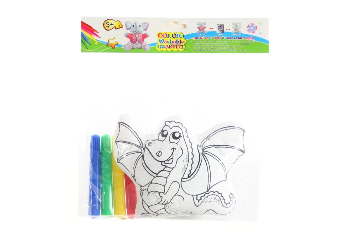 Opdag en kreativ verden med tegne-dragen, der styrker fantasi og finmotorik. Takket være det særlige polyester-materiale kan dyret nemt vaskes når som helst og farves igen – sjov uden ende og uden rod.