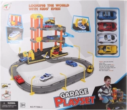 I pakken finder du 4 legebiler, så børnene kan komme i gang med det samme. Garagen er designet til nem samling og intuitiv leg – fra parkering og nedkørsler til hurtige udkørsler.
