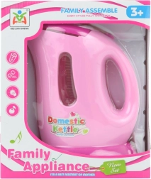 Plastikkedel på batterier bringer sjov ind i børneværelset. Den lyser og laver lyde som en rigtig kedel når vand koger, hvilket skaber en realistisk legestemning.
