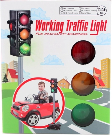 Sjovt og lærerigt lysende trafiklys til børn fra 3 år tilbyder to tilstande – lege-tilstand med automatisk farveskift og læringstilstand med manuel valg. Takket være de realistiske mål 72 × 20 × 20 cm er det ideelt til hjemmelæg og undervisning i færdselsregler. Strømforsyning 3× AAA (medfølger ikke).