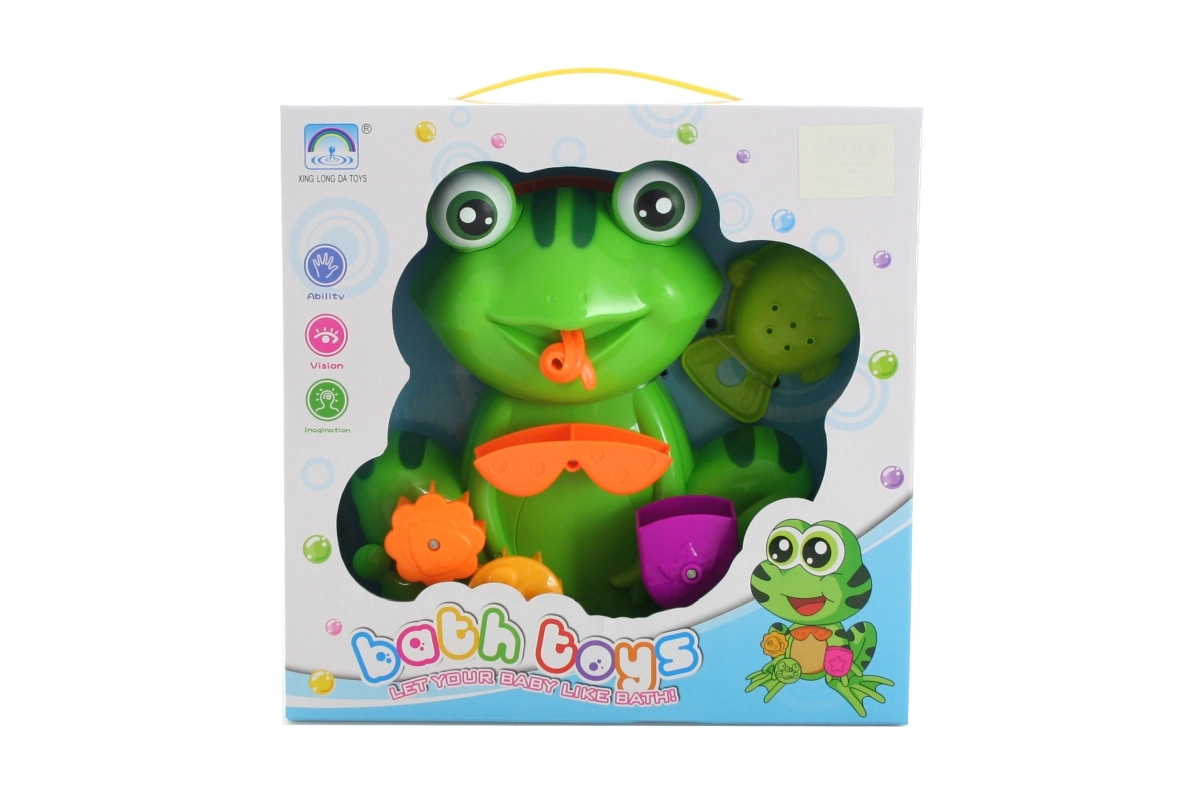 Denne farverige vandfrø er en fantastisk ledsager til børns badetid. Takket være sugekopperne fastgøres den nemt på glatte overflader som badekar eller fliser, så den sidder sikkert og er klar til vandlege. I pakken er der også en praktisk beholder formet som en lille fisk, som børn kan bruge til at øse og hælde vand, træne koordination og opdage magien ved vand-effekter.