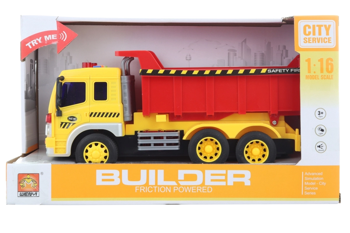 Denne tipbil til børn giver masser af sjov takket være lys- og lydeffekter, som aktiveres med knapper. Med en størrelse på ca. 27 × 12 cm ligger den godt i hånden og er perfekt til leg på tæppet og på børneværelset. Batterier er inkluderet i pakken, så I kan køre direkte “på byggepladsen”.