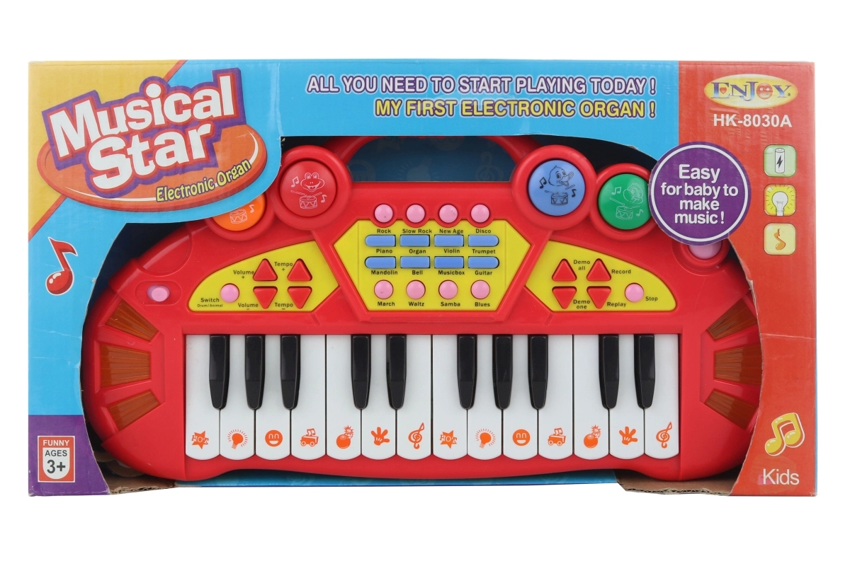 Klaveret drives af tre AA-batterier (medfølger ikke), så du kan tage det med overalt – på tur, til bedstemor eller på børneværelset. Let konstruktion og ergonomisk form gør det nemt for børn at håndtere.