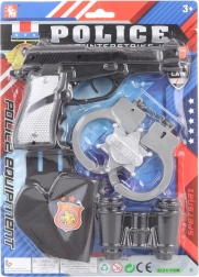 I pakken finder du en pistol med en længde på ca. 19,5 cm med hylster, plastikhåndjern til realistisk leg, en praktisk kikkert til observation og en stilfuld badge til at fuldende politirollen. Sættet er designet til børn fra 3 år og er en fantastisk gave til små elskere af actionlege.