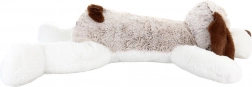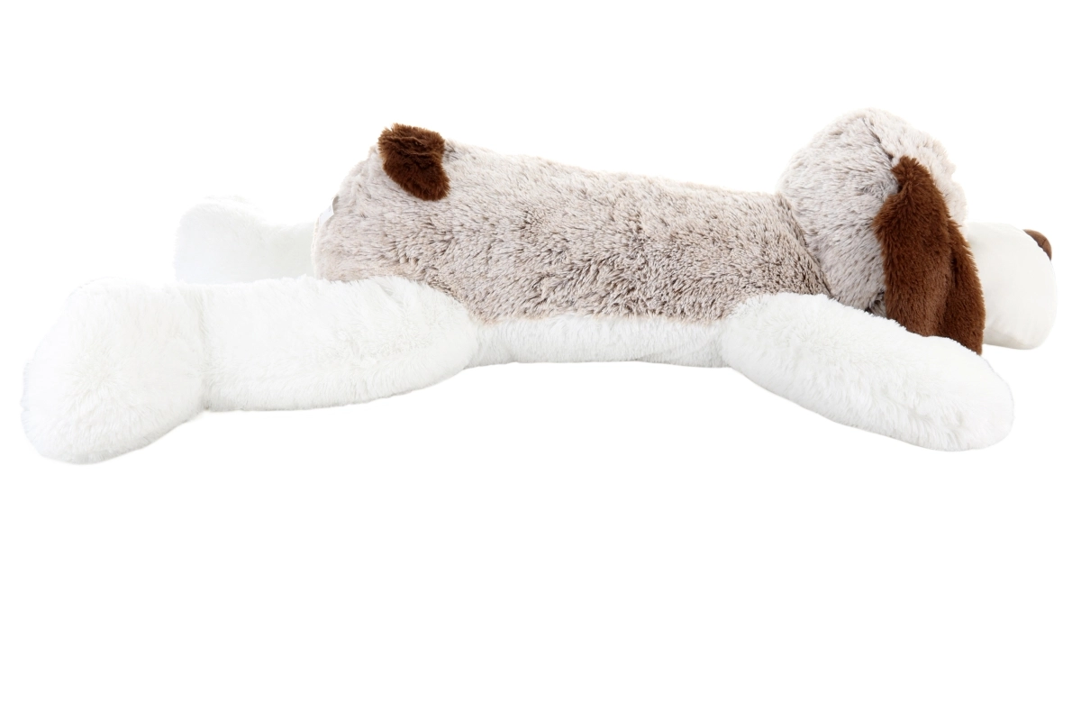 Denne store liggende plyshund vil glæde ethvert barn og dyreelsker. Den er behageligt blød, lækker at røre ved, og med sin længde på 100 cm egner den sig perfekt som krammeven, nakkepude eller dekorativt indslag i sengen eller legekrogen. Kvalitetsforarbejdning og fine detaljer sikrer sikker og komfortabel leg, også for de mindste.