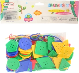 Snøreformer og knapper er ideelle til små børn, der vil forbedre deres finmotoriske færdigheder. Dette legetøj indeholder forskellige former og farver, så børn lærer at genkende former og farver. Sættet indeholder også farvede snore, der gør det nemt for børn at snøre. Dimensionerne på de enkelte former er ideelt designet til små børnehænder.