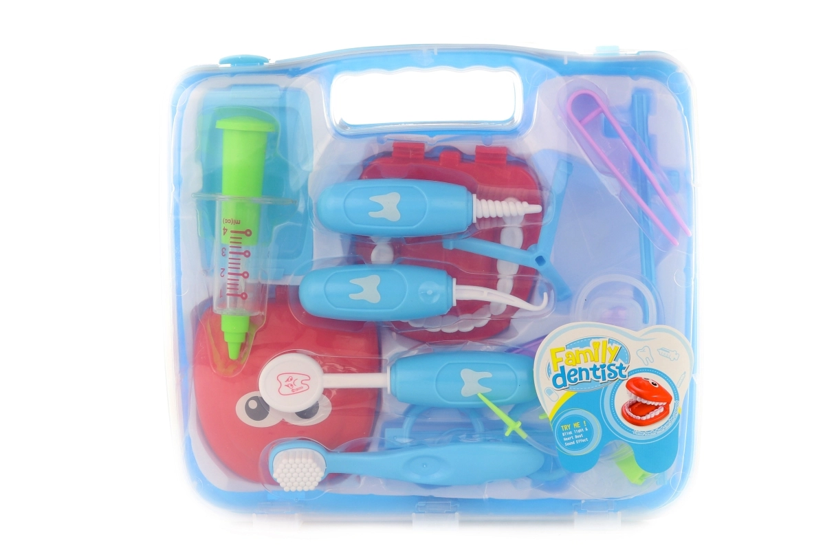 Dette tandlægesæt i kuffert giver børn alt, hvad de behøver for at lege klinik – fra åbne/lukke-tænder til værktøj som sprøjte, spejl og “boremaskine”. Med det rige tilbehør kan børn øve finmotorik, kommunikation og tålmodighed samt på en sjov måde tilegne sig gode vaner for tandpleje.