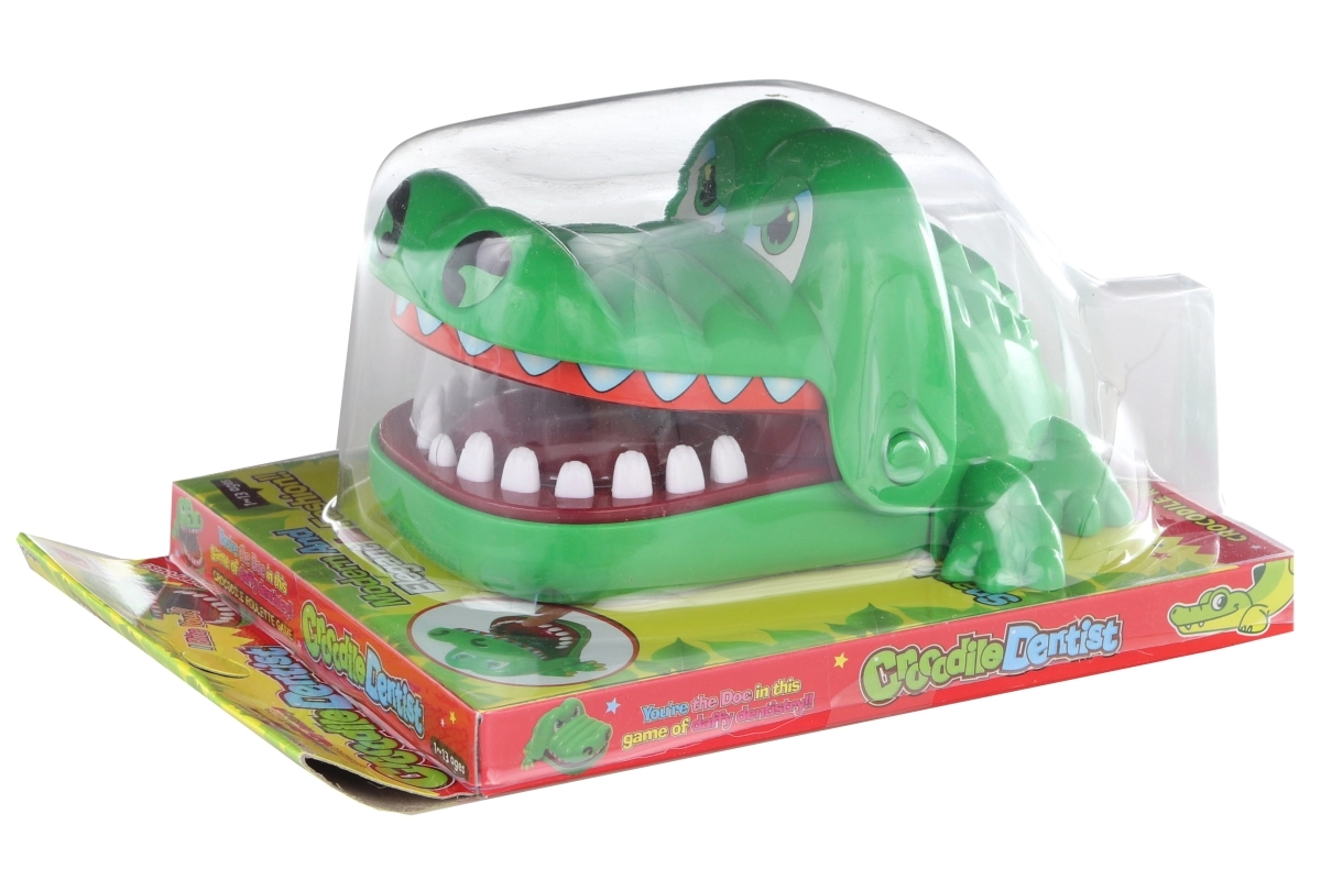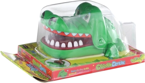 Få masser af grin med et spil, der underholder både små og store. Krokodillen åbner gabet, og spillerne skiftes til at trykke på tænderne – man ved aldrig, hvilken tand der udløser smækket. Den, som ikke bliver ”bidt” af krokodillen, vinder. Ideelt til familiespil, fester og korte pauser.