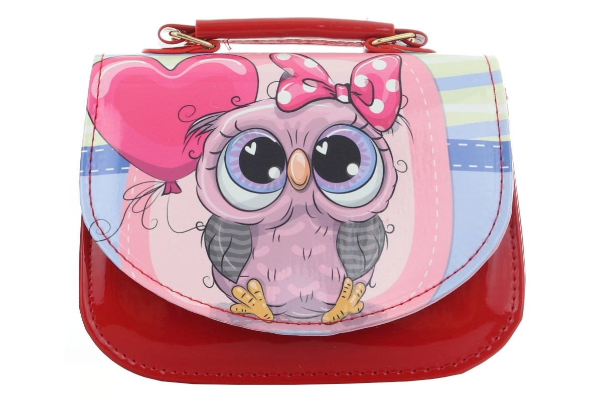 Denne elegante lille taske i rød farve imponerer med et sødt uglemotiv med sløjfe og hjerter. Den blanke overflade og de gyldne detaljer giver tasken et stilfuldt look, der passer til gåture, besøg og børnefødselsdage. Takket være de kompakte mål er den behagelig at bære, og der er plads til alle de små ting, børn gerne vil have med.