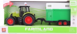 Traktoren er tilpas stor med mål på ca. 38 x 13 cm, hvilket sikrer nem håndtering for små hænder. Anhængeren giver plads til dyr, hvilket stimulerer barnets fantasi og kreativitet.