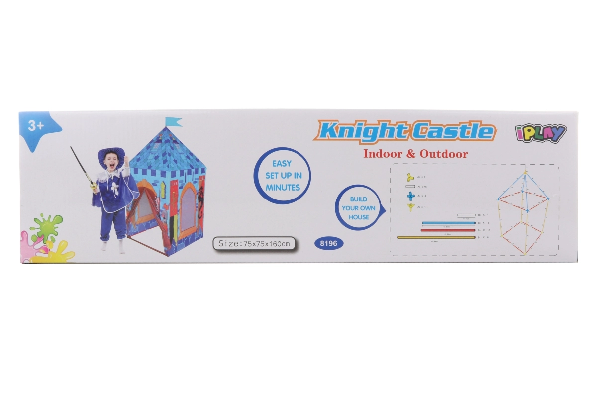 Skab børnenes eget kongerige! Slot-teltet til små riddere er ideelt til kreativ leg, læsning og afslapning. Det er let, nemt at transportere og kan hurtigt stilles op både på børneværelset og i haven. Med en højde på ca. 160 cm tilbyder det også behagelig plads til større børn.