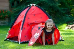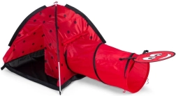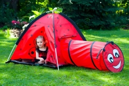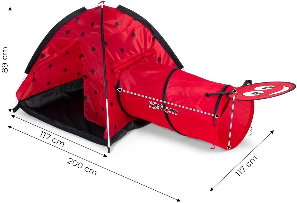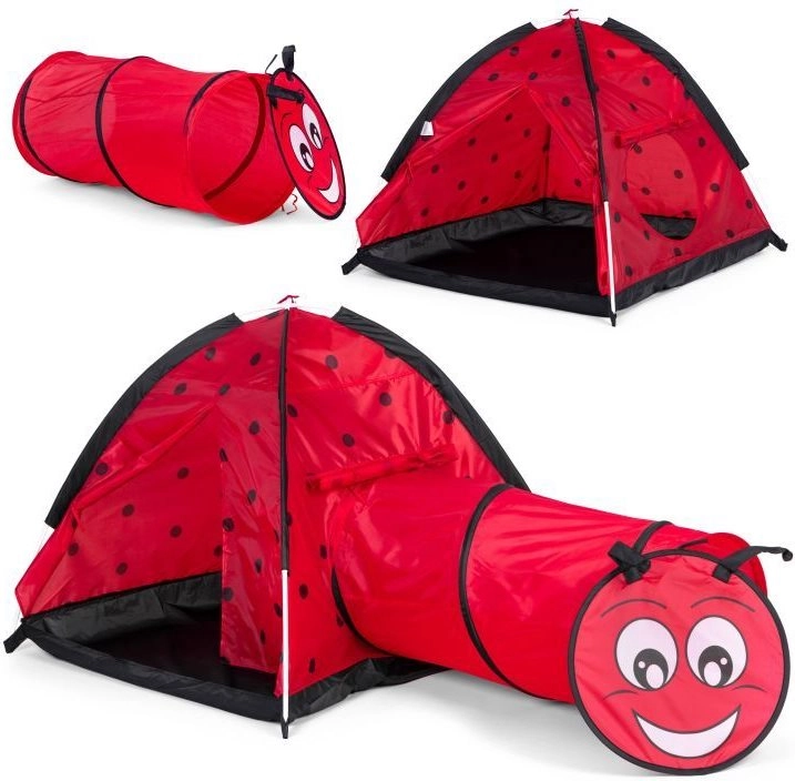 Forvandl værelset eller haven til et sted fuld af eventyr. Børneteltet med mariehøne-motiv inspirerer børn til at udforske og lege kreativt. Iglo-konstruktionen med én indgang og mulighed for tilkobling af en tunnel understøtter bevægelse, kravlen og gemmeleg, hvilket udvikler motorik og fantasi. Takket være den lette ramme kan teltet nemt flyttes, så børnene kan nyde det hvor som helst.