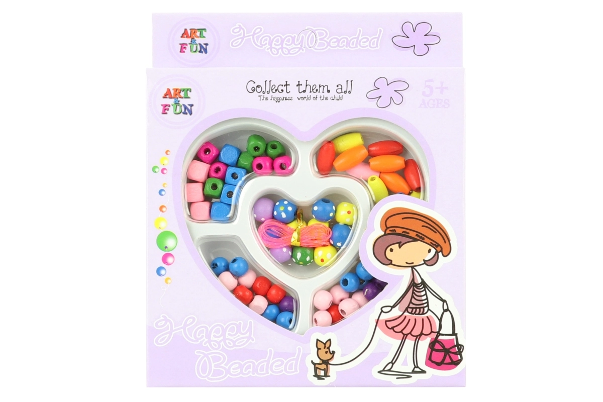 Oplev den sjove verden af kreativitet med et sæt træperler, hvor børn nemt kan lave deres første armbånd og halskæder. De mange former og livlige farver understøtter fantasien og udviklingen af finmotorikken.