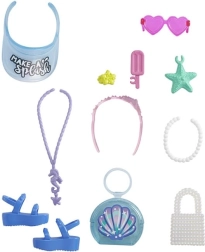 Opdag de innovative Barbie®-sæt med mode-tilbehør, der giver uendelige muligheder for at skabe kreative scenarier med din dukke. Hvert sæt indeholder 11 unikke dele, opdelt i forskellige temaserier: rulleskøjter, ocean, vild natur og pigeaften. Med disse accessories, der omfatter modegenstande som hatte og punge samt sjove legeelementer som skøjter og søstjerner, bliver legen endnu mere spændende.