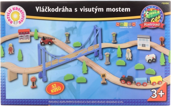 Maxim Togbane med stor hængende bro giver en storslået køreoplevelse over maleriske dale. Dette byggesæt med 57 dele muliggør timevis af kreativ leg for børn fra 3 år og opefter.