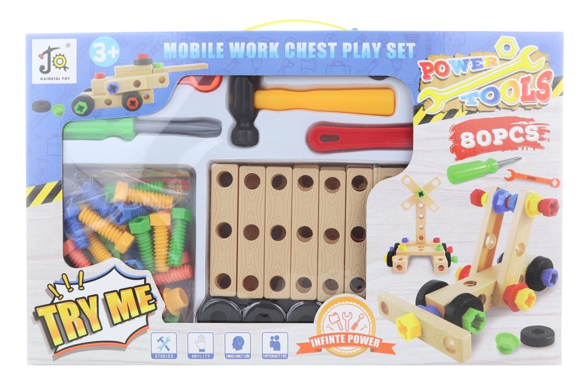 Dette skruemonteringssæt er det ideelle legetøj til små byggere. Med 80 forskellige dele og det medfølgende plastværktøj kan børn skabe deres egne kreationer, skille dem ad og samle dem igen. Legen udvikler tålmodighed, øje–hånd-koordination og logisk tænkning og motiverer samtidig til selvstændig udforskning.