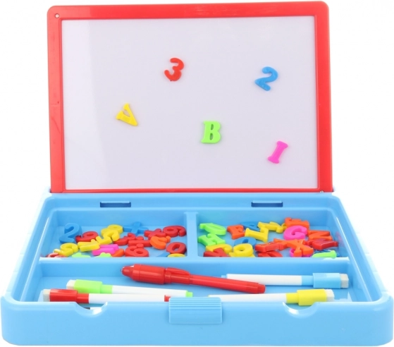 Opdag kreativ underholdning for børn med denne 2-i-1 tegne- og magnettavle, som kombinerer tegning og læring af bogstaver og tal. Sættet indeholder en lysende pen, 5 farvede tuscher, 26 magnetiske bogstaver og 26 magnetiske tal – ideel til at udvikle fantasi, finmotorik og legende læring.