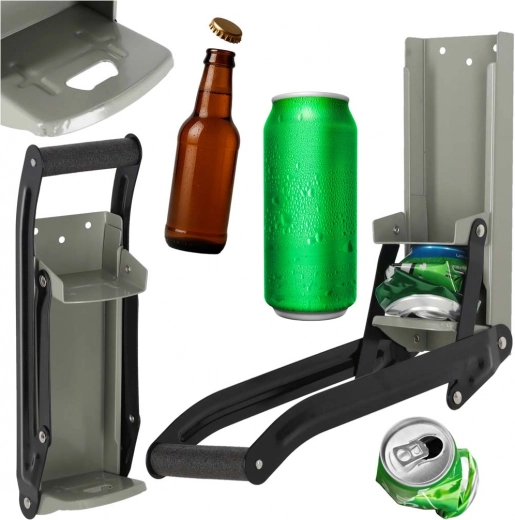 Praktisk væghængt dåseknuser i robust stål sparer plads i affaldet og gør genbrug nemmere. Vægmontering, kapacitet op til 500 ml og integreret flaskeåbner for maksimal bekvemmelighed derhjemme og i værkstedet.