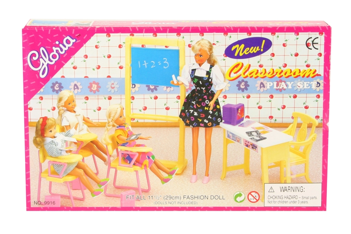 Med Glorie skoleklasse kan ethvert børneværelse forvandles til et lille klasselokale. Børn kan lege både lærer og elever, skrive på tavlen, rette tests og forberede sig til skolen. Det omfattende tilbehør sikrer timevis af sjov og styrker sociale færdigheder.