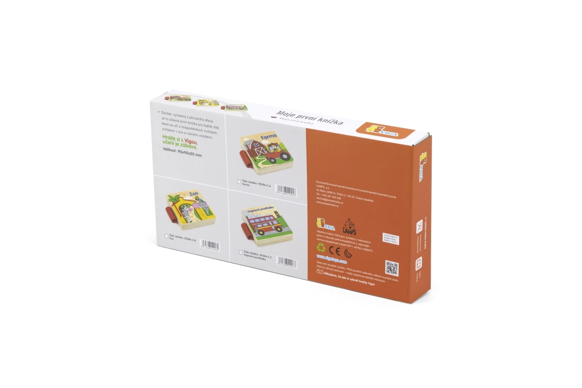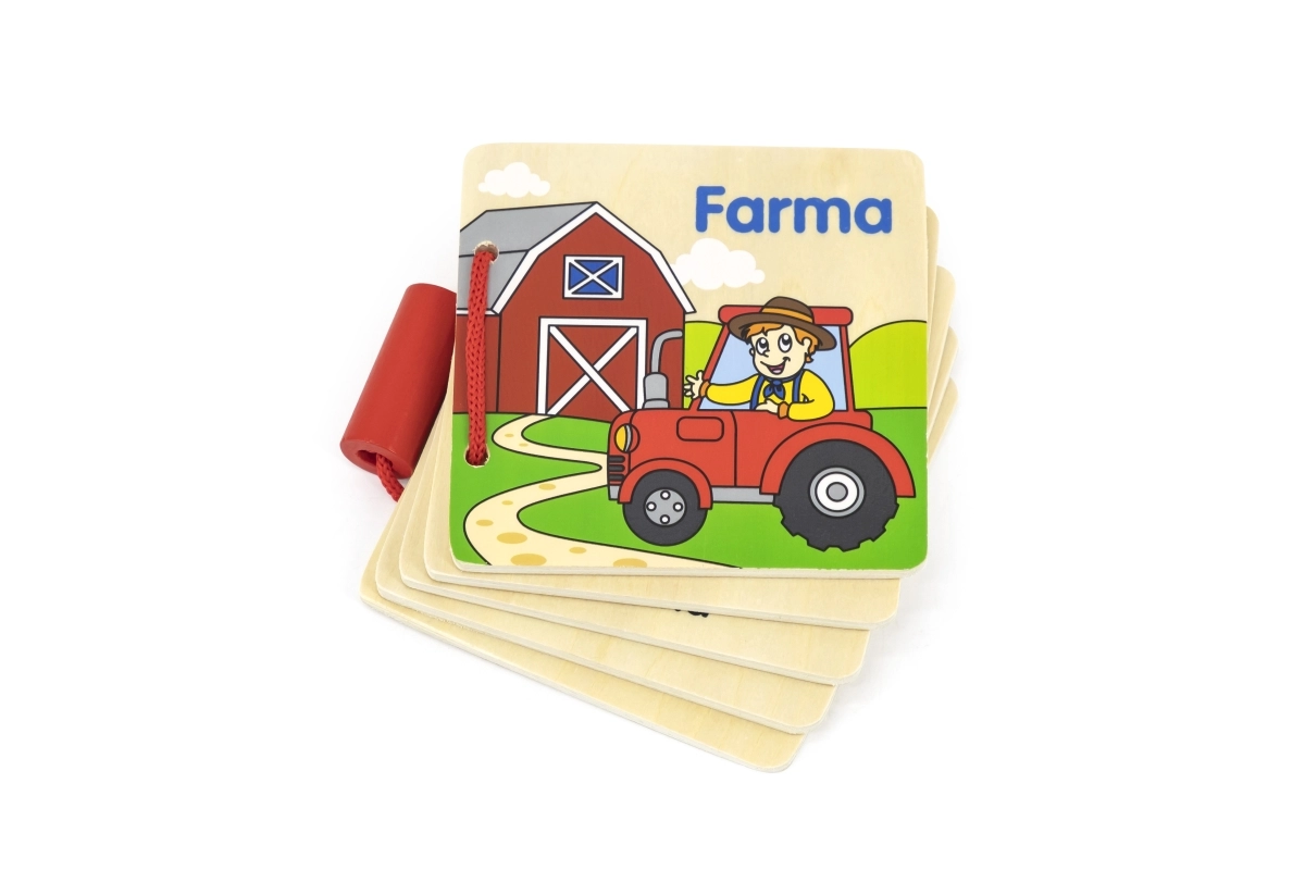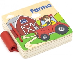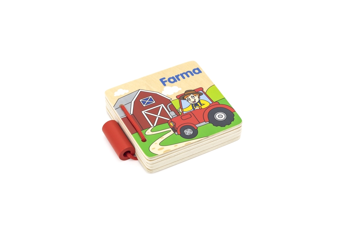Denne træbog med gårdtema er et fantastisk redskab til børns første møde med dyrenes verden. De holdbare træsider med klare illustrationer og tjekkiske billedtekster hjælper med at udvikle finmotorik, ordforråd og koncentration.