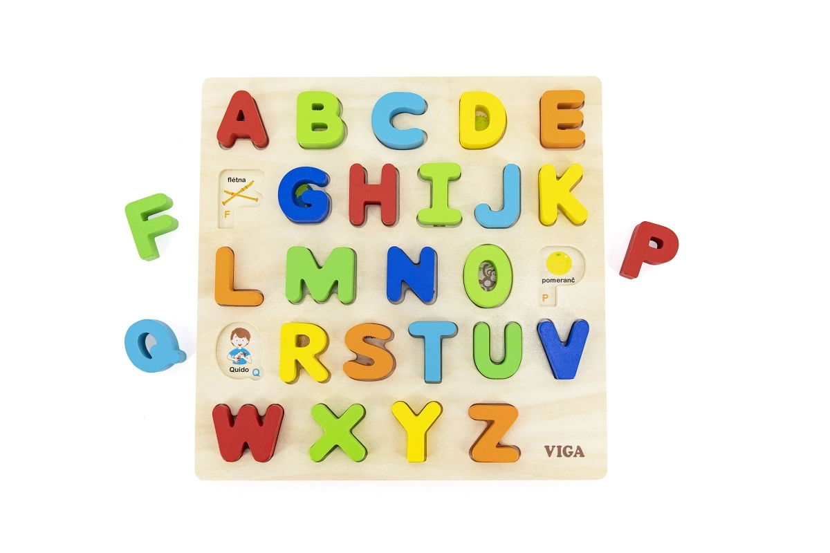 Træpuslespil med bogstaver fra det tjekkiske alfabet er det ideelle legetøj til små børn fra 18 måneder. Dette legetøj understøtter udvikling af motoriske færdigheder og læring af alfabetet på en sjov måde.