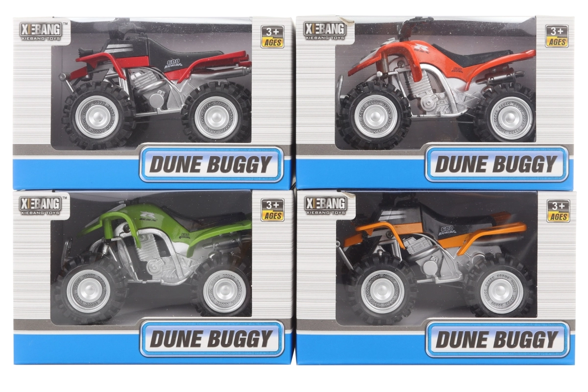 Denne ATV-model er ideel til små elskere af terrænkøretøjer. Metaldele øger holdbarheden, mens plasttilbehør giver detaljer og lav vægt. Legetøjet er designet til at klare daglige børneløb og fantasifulde eventyr.