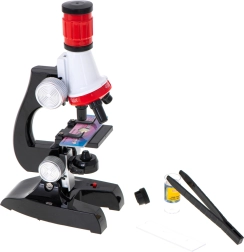 Dette mikroskop er ideelt til små videnskabsfolk og tilbyder tre grader af forstørrelse: 100x, 400x, og 1200x. Det er udstyret med en indbygget pære til prøvebelysning, hvilket muliggør detaljeret observation og giver timevis af sjove opdagelser.