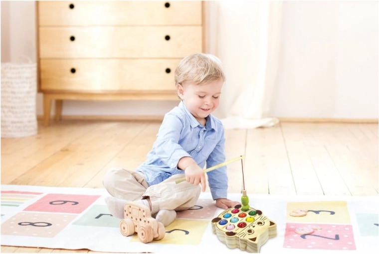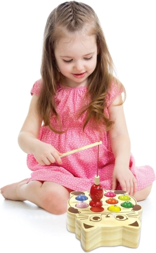 Med dette fantastiske spil kan barnet lege fisker hvor som helst og når som helst. Tag stangen med magnet i hånden og forsøg at fange en lille fisk. For at gøre det nemmere har hullerne samme farve som fiskene. Spillet udvikler børns motorik og koncentration samt evnen til at genkende farver. Forældre og ældre søskende kan også prøve deres kunnen. Hvem fanger alle fiskene på den korteste tid?