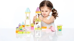 Træbyggesættet Eventyrby er et ideelt valg for børn, der elsker at skabe og bruge fantasien. Sættet indeholder 55 klodser, som kan bruges til at bygge huse, broer, slotte og tårne. Leg med klodser udvikler sensoriske og motoriske færdigheder, logisk tænkning og kreativitet.