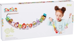 Indeholder 13 træelementer med eventyrmotiver til sjov trådning.