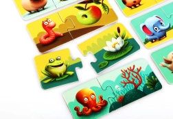 Dyk ned i legende læring med puslespillet Puzzlika Mit hjem. Børn forbinder billedet af et dyr med dets typiske bolig og udvikler naturligt deres logiske tænkning, ordforråd og hånd–øje-koordination. De store, lette at gribe brikker er ideelle til små hænder.