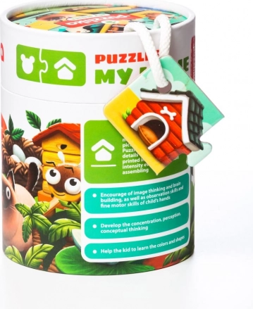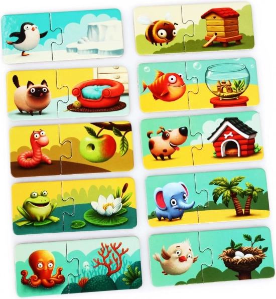 Det sjove sæt Puzzlika Mit hjem lærer børn at matche dyr med deres hjem. Indeholder 20 store, robuste brikker, der danner 10 par. Understøtter logisk tænkning, finmotorik, kendskab til dyr og deres miljø samt visuel perception. Fremstillet af holdbart, flerlags karton med blank overflade, er let at rengøre og ideelt til førskolebørn.