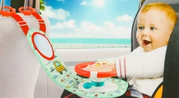 Sikkerhed er vores prioritet, derfor er legetøjet lavet med den største omhu uden skarpe kanter og løse dele. Det kan nemt fastgøres til nakkestøtten med justerbare plastikringe.