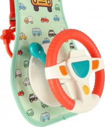 Dette interaktive bilrat er designet til at underholde dit barn under rejsen. Det inkluderer et farverigt panel med rat og et sikkert spejl. Det har fire knapper og en sensorisk håndtag, som tilbyder lyde og farverige lys, der stimulerer børns fantasi og sanseindtryk.